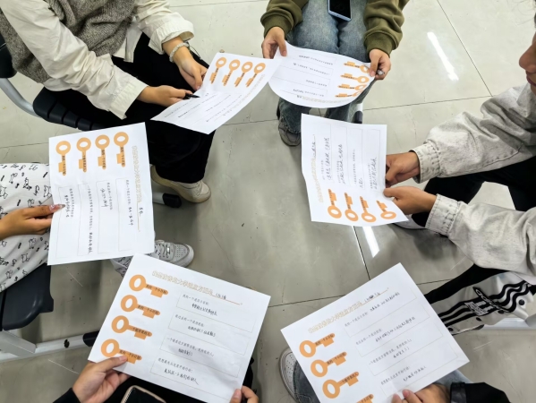 首次团体心理辅导围绕“新启航,‘心’适应”主题展开,涵盖了环境适应、人际适应、学习适应等五个方面。活动以“抓手指”游戏破冰,融合案例、调查与理论讲解,深入剖析“适应”内涵和现象。随后,通过自我反思、小组讨论,学生依托“金钥匙”行动计划,分组设定适应目标,细化步骤,共商策略。