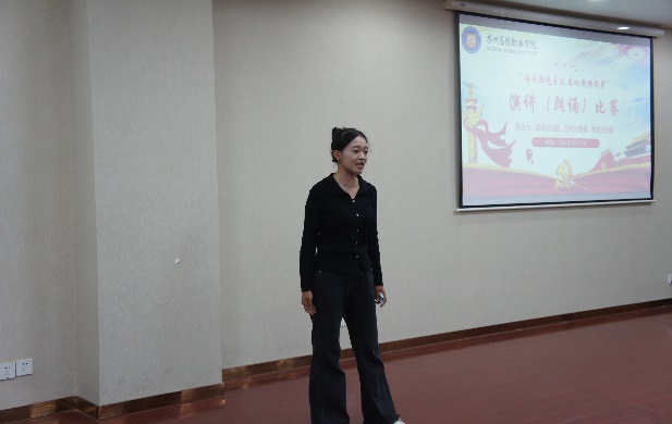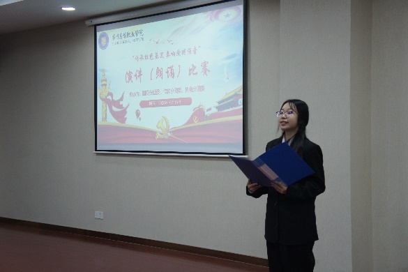比赛现场气氛热烈,选手们以饱满的热情和真挚的情感,讲述着一个个感人至深的红色故事,抒发着对祖国的热爱和祝福。选手们的演讲和朗诵内容涵盖了革命历史、英雄人物、爱国情怀等多个方面,他们用自己的方式诠释着红色基因的内涵和价值。表达了对祖国的热爱与祝福。评委老师们认真聆听,根据选手们的仪容仪表、演讲内容、语言表达、情感投入等方面进行了公正评分。