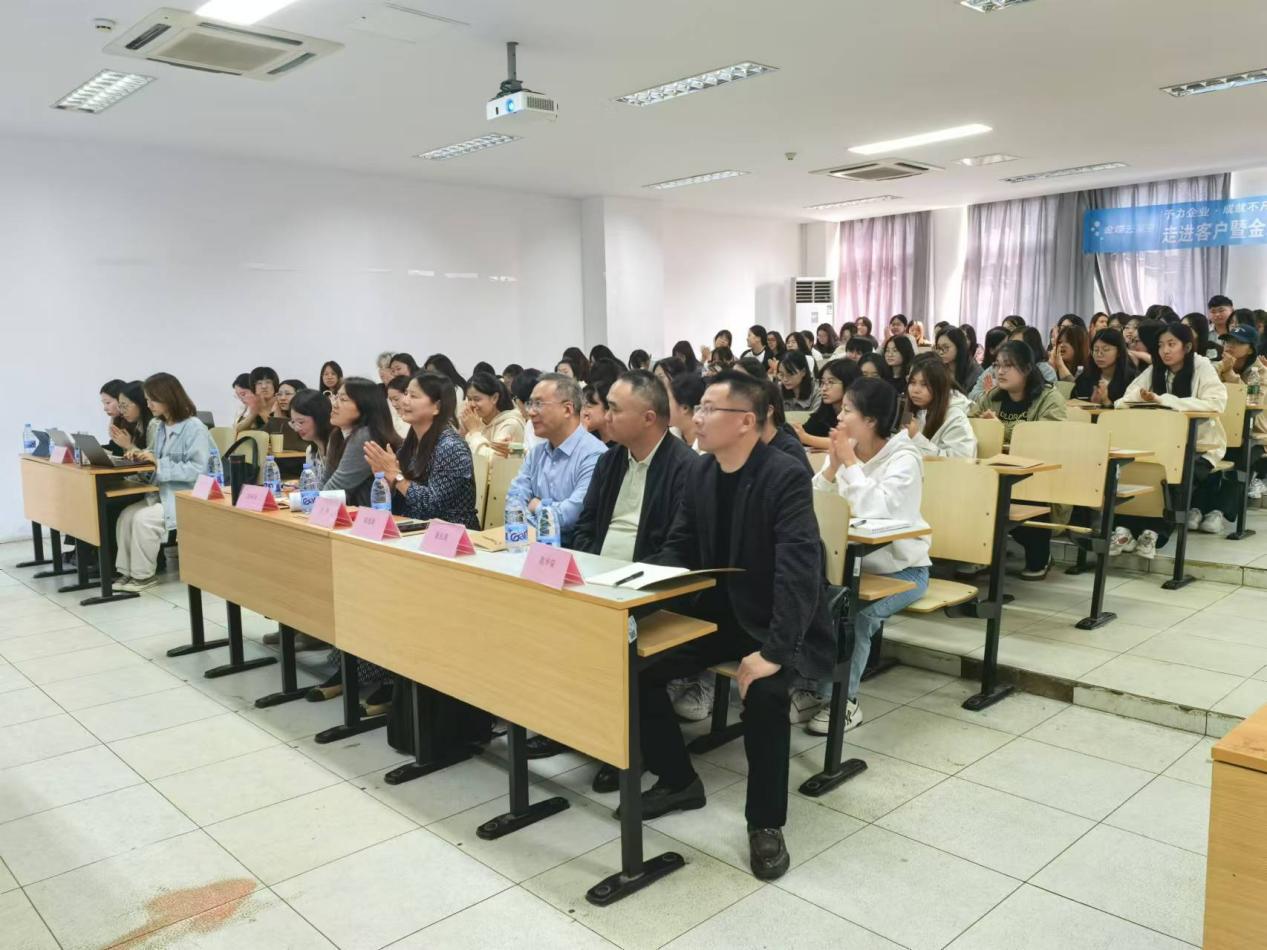 宣讲伊始,国际商学院常务副院长张静首先向同学们介绍了学校和学院的发展历程,热情洋溢地鼓励学子们珍惜大学时光,积极参与各类校园活动,充分利用学院提供的校企合作平台,拓宽知识视野,为未来的职业生涯奠定坚实基础。紧接着,苏州江山软件科技有限公司的总经理向学生们展示了当前应届毕业生的就业实景,详细剖析了用人单位对毕业生的期望条件以及求职的黄金时期,为同学们的职业规划提供了宝贵的参考和启示。