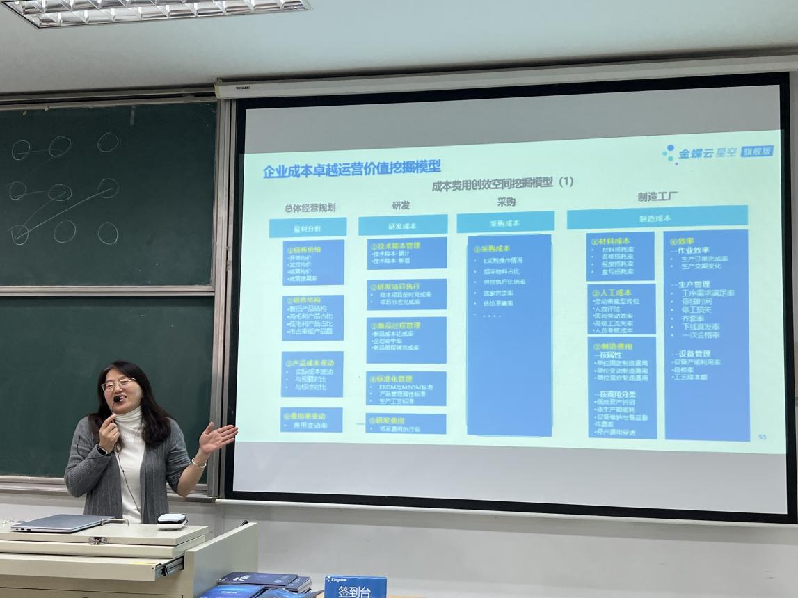 随后,公司的负责人围绕“企业成本管理价值新主张”这一主题,展开了一场深入浅出的专题讲座。他强调,从传统的成本核算向卓越运营转变,是当前成本管理的新趋势,同时,借助先进的数字化应用工具,可以大幅提升企业的成本管理能力,实现运营效率的飞跃和经营效益的最大化。整个讲座气氛热烈,互动频繁,不仅加深了同学们对企业成本管理价值新主张的理解,也激发了他们对企业管理和未来发展的思考。