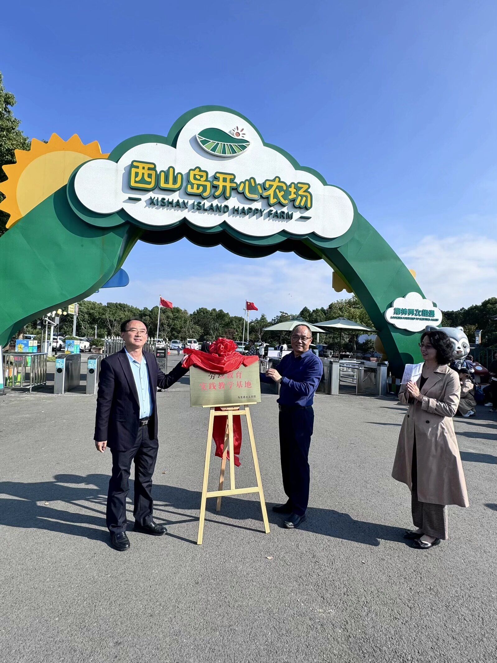 为深入贯彻落实习近平总书记关于劳动教育的重要论述,充分发挥劳动教育实践教学基地育人功能,切实提高劳动教育教学工作实效,10月24日下午,beat365官网马克思主义学院与西山岛开心农场举行劳动教育实践教学基地共建揭牌仪式。苏州西山国家现代农业示范园区有限责任公司党支部书记兼董事长凌云芳、苏州西山国家现代农业示范园区有限责任公司总经理兼法人邱晓雷、西山岛开心农场总经理袁强生、马克思主义学院院长吴歧范及社科部党支部全体教师共同参加了本次揭牌仪式。仪式由劳动教育教研室主任陈丽侠老师主持。