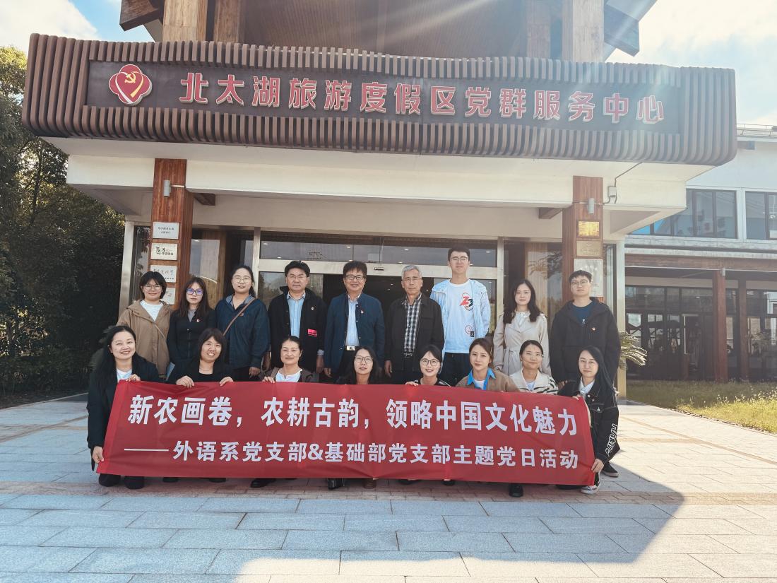 为庆祝中华人民共和国成立75周年,10月25日下午,人文社会科学学院外语系党支部和基础部党支部携手赴苏州望亭镇稻香公园开展“新农画卷,农耕古韵,领略中国文化魅力”的主题党日活动。此次活动还特别邀请了外语系教师、国际学院教师和留学生们参加,旨在深入了解、传播和体验中国农耕文化,促进国际文化交流。