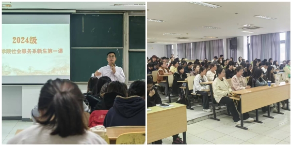 为引导新生明确学习目标,帮助他们开启精彩的大学生活,“扣好人生第一颗扣子”,10月18日、30日与31日,国际商学院开展了2024级新生“开学第一课”,国际商学院党总支书记王则斌、学院常务副院长张静、学院党总支副书记张志豪分别为会计金融系、商务管理系和社会服务系新生开讲授课。