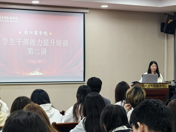 为进一步加强学院学生干部队伍建设,提高学生干部组织管理、沟通协调、团队协作能力,10月31日,国际商学院开展了学生干部专题培训第二课,学院分团委书记姚瑶担任主讲人,以“初心如炬,笃学精技”为主题,就学生干部技能提升进行培训交流。