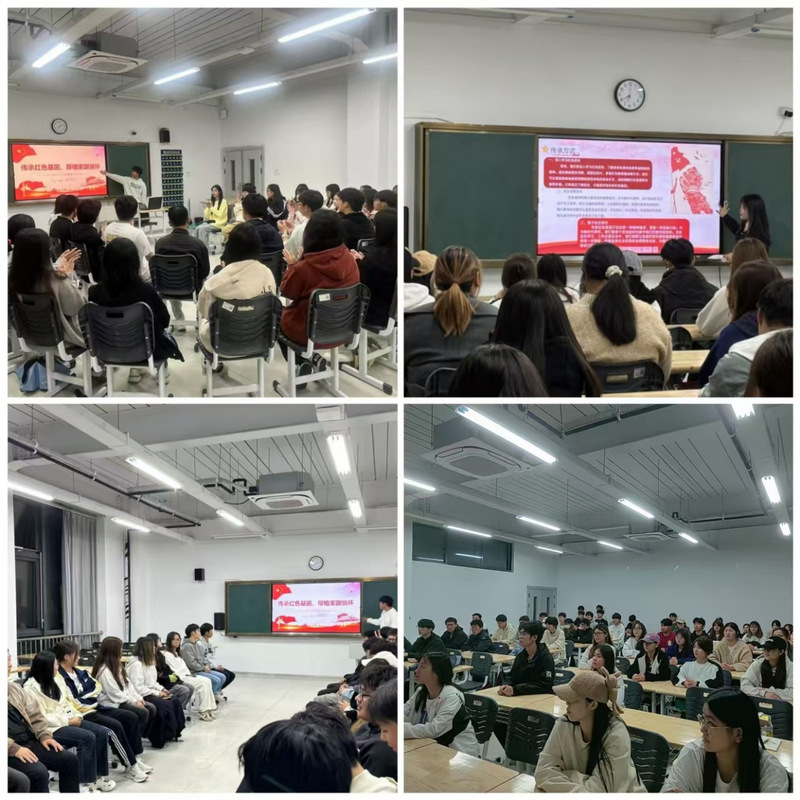 随后,各班团支书作为主讲人,结合视频内容展开了深入浅出的讲解。他们用生动的语言为同学们讲述了红色基因的内涵和传承意义,从中国共产党的初心使命到不同历史时期红色精神的演变,引导同学们认识到红色基因是中华民族宝贵的精神财富,是我们在新时代砥砺前行的强大动力。团支书们旁征博引,将历史故事与现实意义紧密相连,使同学们对红色文化有了更系统、更深入的理解,进一步增强了传承红色基因的责任感。