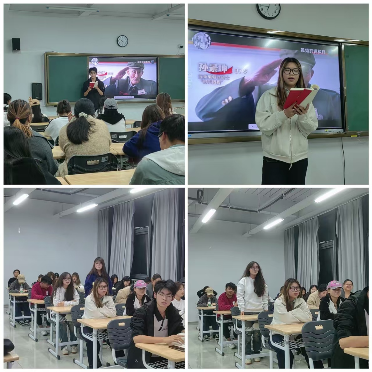 活动伊始,各班团支书播放了精心挑选的红色视频。视频内容丰富多样,有革命战争年代先烈们抛头颅、洒热血的英勇战斗场面;也有新中国建设时期,无数劳动者在艰苦条件下为国家建设拼搏奋斗的感人画面……这些视频如同一扇扇历史之窗,带领同学们穿越时空,深刻感受红色基因的力量,瞬间吸引了同学们的目光,让大家沉浸其中。