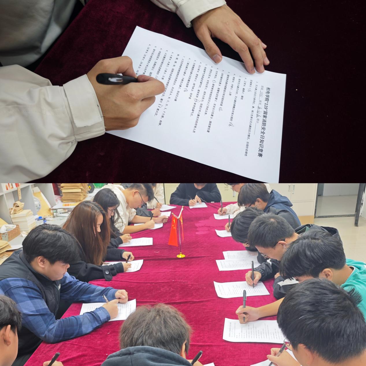 为了检验活动成果,激发同学们学习消防安全知识的热情,学院还举办了一场消防知识竞赛。竞赛题目涵盖了消防法规、火灾预防、初期火灾扑救、疏散逃生等多个方面。进一步加深和巩固了同学们所学的消防安全知识。