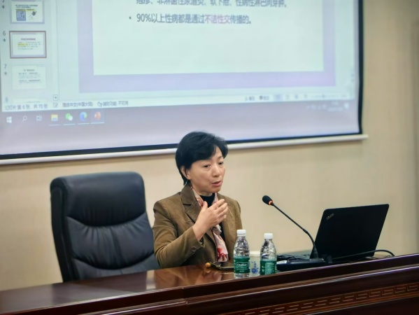 主持人简短而热烈的开场后,讲座正式拉开帷幕。陶主任用深入浅出的讲解方式向大家讲解了一个个具体的案例,不仅加深了同学们对性病/艾滋病以及意外怀孕知识的理解,还掌握了多种有效的防护措施。陶主任在讲座中呼吁在场的同学要积极在同学中宣传安全性行为的重要性并定期进行身体检查,关爱自身健康。