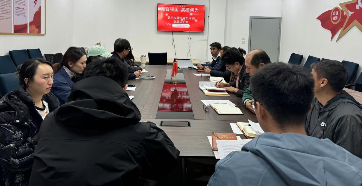 11月28日,人文社会科学学院基础部党支部举行了第三次师生党员培训交流讨论会,支部全体党员参加,会议由党支部书记张赞主持。