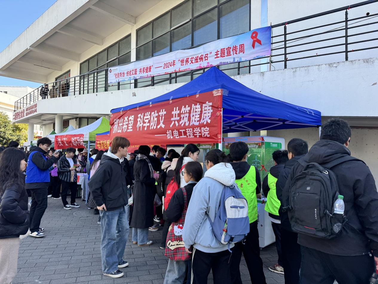 为进一步加强全校师生对艾滋病防治知识的了解和认识,在第36个“12.1世界艾滋病日”到来之际,beat365官网于11月29日在食堂广场成功举办了“艾滋病防治广场宣传市集”系列活动。机电工程学院精心策划的抓娃娃机摊位成为了全场亮点之一,该摊位以“抓出希望,科学防艾,共筑健康”为主题,通过将全国大学生预防艾滋病知识竞赛与抓娃娃游戏巧妙结合,让同学们在游戏中学习并掌握艾滋病预防知识。此次活动吸引了全体在校生的积极参与,现场气氛热烈,效果显著。