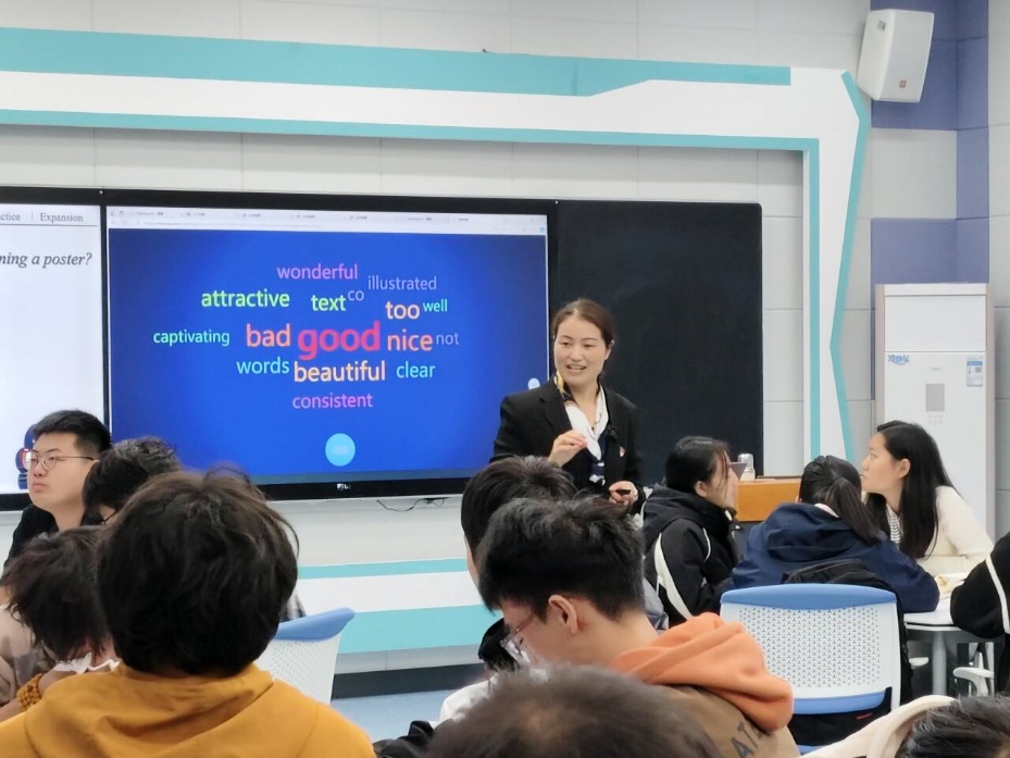 吴晓娟老师让学生制作并展示以中国功夫为主题的海报,锻炼了学生的写作能力,体现了理论联系实际的教学原则,促进了学生全面发展。刘洋老师通过讲解昆曲的历史、地位、特色及代表作等,让学生用英语介绍昆曲,引导学生用英语讲好中国故事。崔红梅老师通过对京剧角色、服饰、声音,妆容等介绍,在听与说的互动中调动学生的感官,使学生更深入地体会到非物质文化遗产的价值。