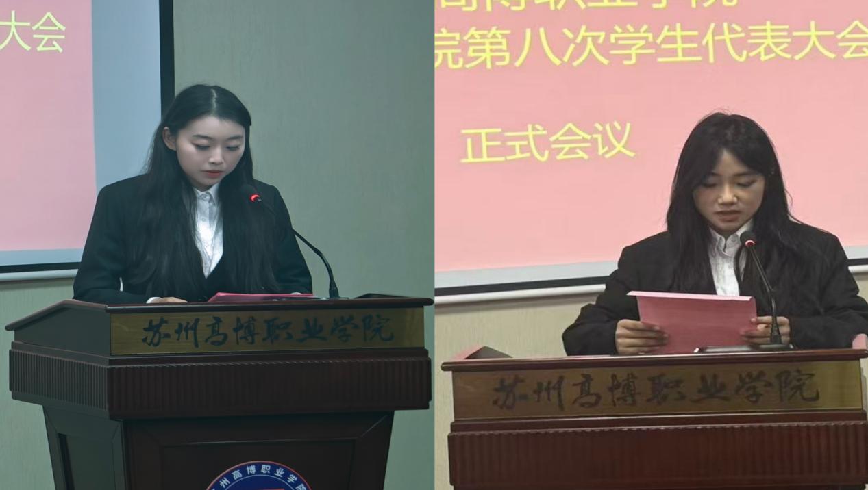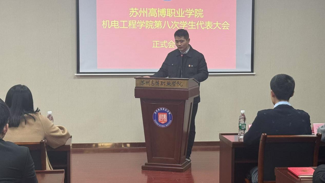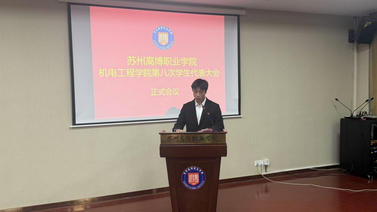 最后,学工办主任王一迪宣读了《关于苏州高博软件技术职业学院机电工程学院第八次学生代表大会选举结果的报告》。并宣布了当选机电工程学院第八届主席团及出席学校第八次学代会代表的名单。