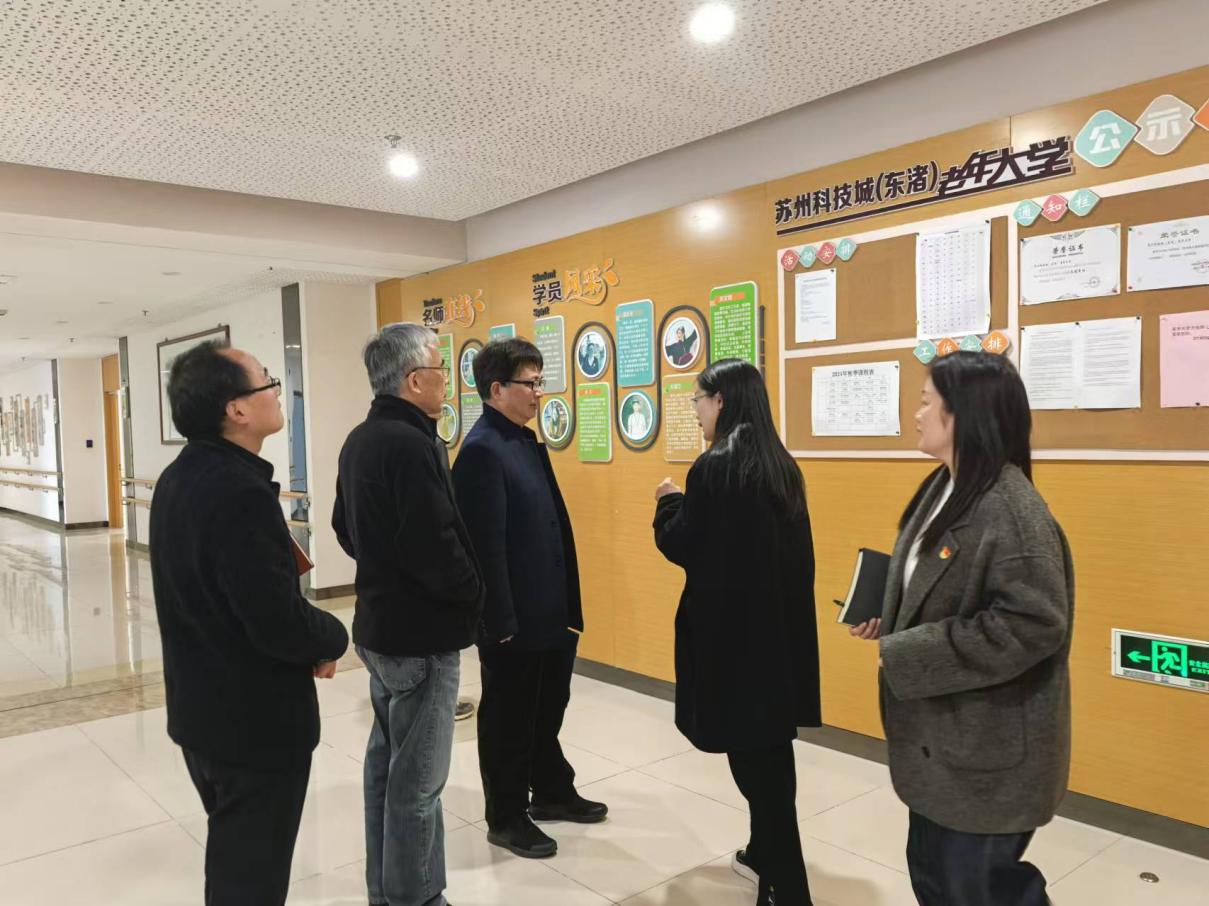 首先,大家在东渚街道社会治理办主任王惠芳的带领下参观了位于东渚镇龙惠花苑内的苏州科技城(东渚)老年大学。该老年大学创办于2017年,是一所高起点、高标准的现代化老年大学,也是科技城(东渚街道)富民惠民的重要文化载体之一。为老年人提供更加专业化、个性化、定制化的教育培训服务,以课会友、丰富知识、连接社会,帮助老年人实现自身价值,也极大满足了老年人走出家门的情感需求,为老年人的生活增添活力。同时,将老年教育和居民生活紧密联系,让老年大学成为服务老年群体情感与教育需求的多功能平台。2020年苏州科技城(东渚)老年大学获得国家卫生健康委、全国老龄办授予的全国“敬老文明号”称号。通过实地参观考察,该老年大学优良的设施以及贴心暖人的服务理念给大家留下了深刻而美好的印象,大家纷纷为地方党委和政府一心为民服务、切实践行党的惠民政策而点赞。