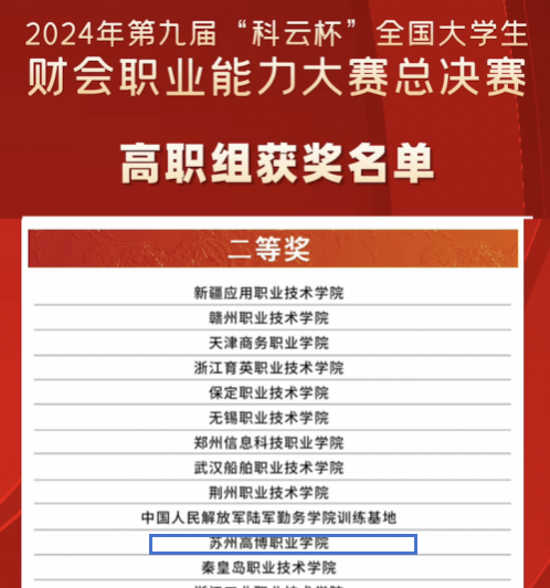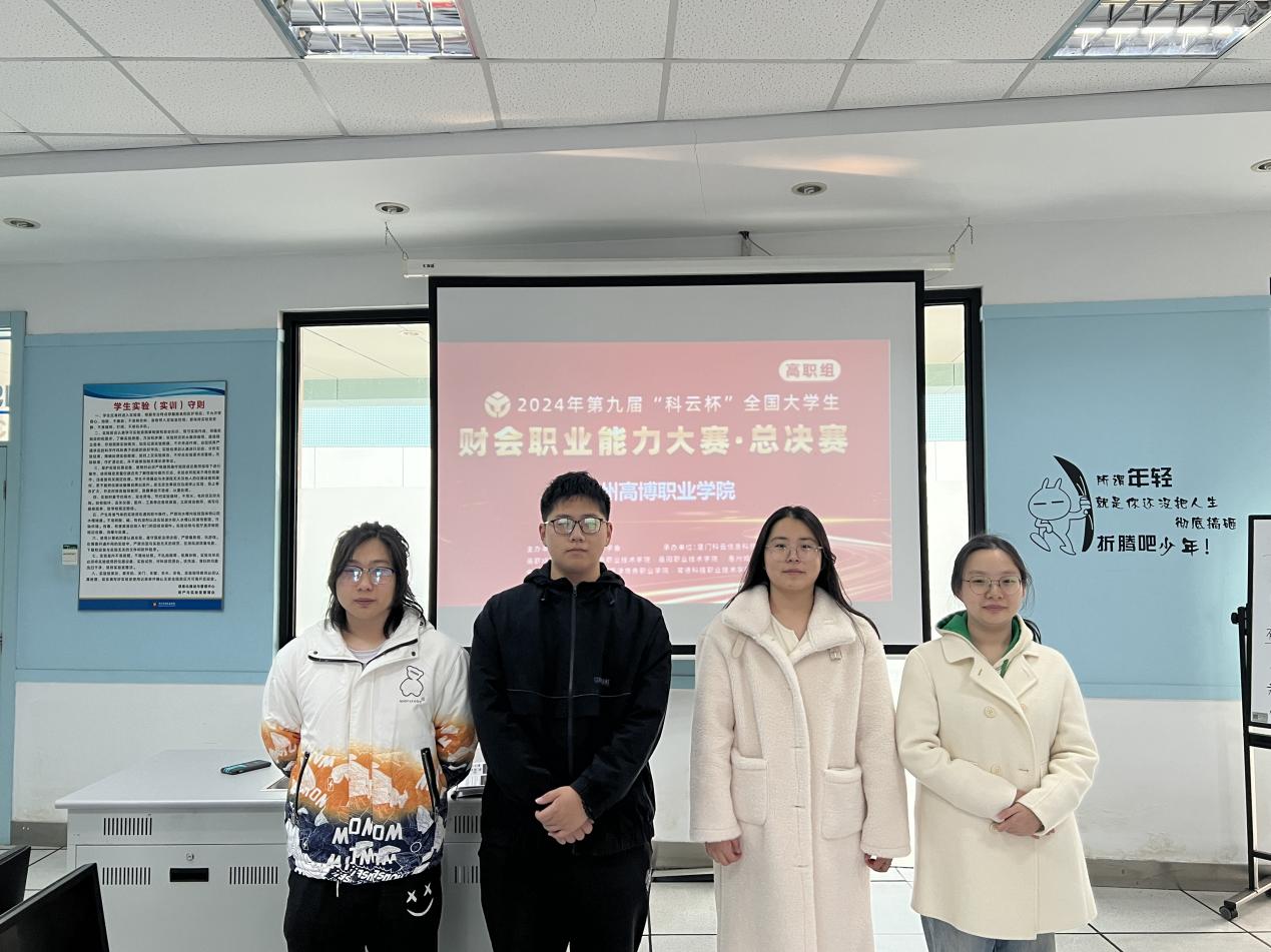 12月7日,2024年“科云杯”全国大学生财会职业能力大赛全国总决赛圆满落幕。beat365官网国际商学院李珂、张婷老师指导的王子睿、蔡奉娟、孙瑜、马雨诺四位同学,获得全国总决赛高职组二等奖,同时,beat365官网还荣获“优秀组织奖”。