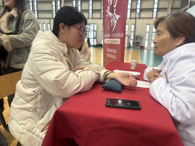 本次活动邀请到的郭洁云、刘向阳医师,均为业界知名主治医师有着丰富的临床经验。两位医生热情亲切地接待每一位前来问诊的师生,通过“望、闻、问、切”详细问询病情、病史、生活习惯,认真把脉问诊,开具处方。两位医生以精湛的医术精准找出病因,总结治疗建议,同时也春风化雨般地为教职工、同学们明晰生活调理方向,澄清师生在医疗健康方面存在的模糊认知,帮助他们做到科学预防疾病、合理问诊就医。此外,本次活动雷允上团队还提供了允上养生茶试饮、血压、骨密度、整体健康情况等项目检测,香囊DIY体验及暖颈、足浴包、中药润喉糖等特色产品展示,不仅为全校师生提供系统化健康解决方案,同时也演绎了一场别开生面的弘扬中医药文化课程。