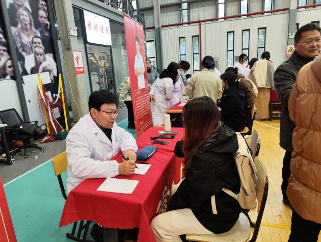 活动于2024年12月11日如期举行。正午时分,苏州高博体育馆内气氛热烈,义诊展位前已早早排起长队,问诊师生络绎不绝。医学院孙小娅院长、章晓莉副院长、於学良副院长亲临现场指导,第一时间对前来义诊的雷允上团队及两位资深中医专家致以热烈欢迎与诚挚问候。