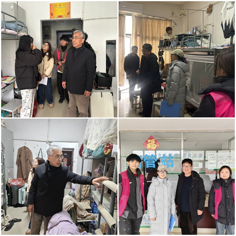 为进一步关心学生学习与生活情况,了解学生思想动态,帮助学生解决实际困难,12月19日,人文社会科学学院党政领导班子成员及辅导员、班主任一行深入学生宿舍,为同学们送去冬日的关怀与问候。