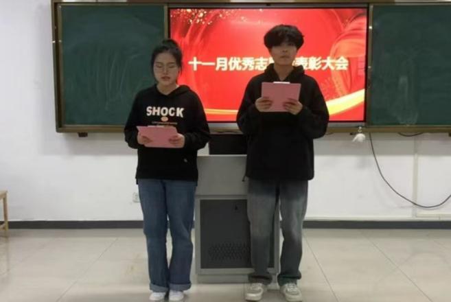 大会伊始,主持人介绍到场老师。此次活动不仅是对志愿者们无私奉献和辛勤工作的肯定,也是对他们精神风貌的高度赞扬。随后,大会进入了激动人心的表彰环节,主持人们宣读了获得“优秀志愿者”和获得“志愿者证书”的同学名单,并邀请老师上台颁奖与合照。