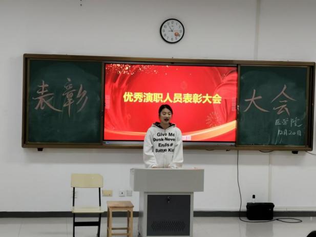 为激励全体成员追求卓越,进一步推动艺术团的蓬勃发展,医学院于12月20日在12-107举行学院艺术文化系列活动表彰大会。参加此次表彰大会的有医学院分团委书记周红婕老师、学工办副主任张子昕老师、辅导员吕瑞晗老师、刘宇老师、桑云艳老师及各获奖同学。本次大会由朱学坤和陈雨榕同学主持。