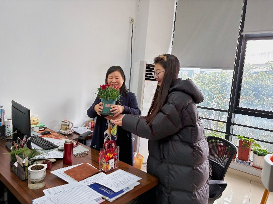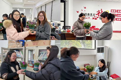 上午9:00,学生会的成员们精心策划了一场温馨的送花活动,为学院的女教师们送上节日祝福。同学们手捧精心挑选的鲜花盆栽,走进办公室,将芬芳与温暖传递给每一位辛勤耕耘的老师。