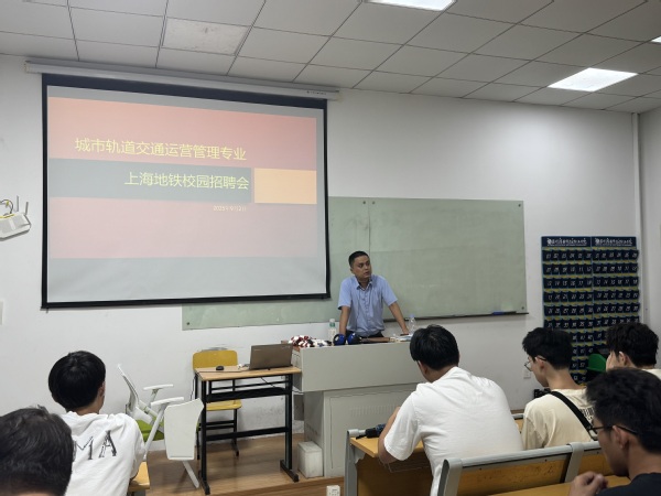 为稳步推进2026届城市轨道交通运营管理专业毕业生就业工作,2025年9月2日,机电工程学院在实训楼18-203教室组织了上海地铁站务员招聘宣讲会。本次宣讲会由上海得俊轨道交通有限公司(系上海地铁指定站务员合作招聘服务商)人事经理张璟主讲,机电工程学院副院长韩丽东、城市轨道交通教研室主任杨磊及2026届城市轨道交通运营管理专业毕业生参会。宣讲会旨在帮助毕业生更全面地了解上海地铁企业招聘需求、岗位职责及职业发展路径,进一步增强校企衔接,推动毕业生高质量就业。