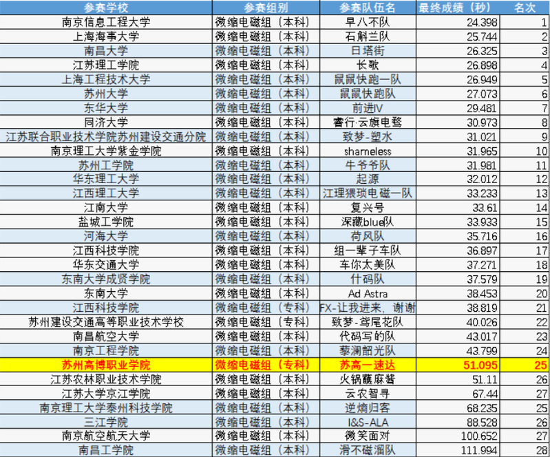 2025年7月下旬,第二十届全国大学生智能汽车竞赛华东分赛区比赛中,我校实现了一项令人振奋的历史性突破。由信息与软件学院孙涌院长、李月峰副院长统筹指导、黄冬丽老师具体带队,学生李昆鲁、吴弈泽、邹德志组成的“苏高一速达”代表队,首次参加缩微电磁组竞赛即荣获华东赛区二等奖。在华东区缩微电磁组别70多支参赛队伍中总排名第25名,高职组排名第3名,在江苏省内高职院校中成绩排名第2名。