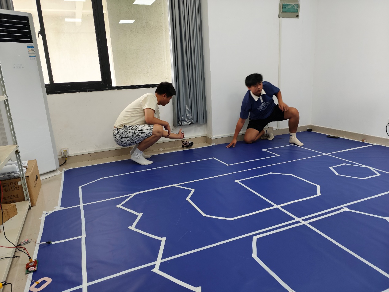 在整个备赛过程中,同学们付出了超乎寻常的努力和汗水。从零基础开始,三位同学放弃了所有节假日休息时间,每天在实验室工作超过12个小时。暑假期间,当其他同学享受假期时,他们却顶着酷暑坚守在实验室,一遍遍地调试代码、优化算法、测试车辆性能。李昆鲁同学作为队长,经常熬夜研究技术方案,甚至通宵达旦地修改程序、调试小车;吴弈泽、邹德志同学为了一个传感器参数的优化、车辆机械结构的调整,反复测试了上百次;比赛前一周,他们每天只能睡2-3个小时,有时甚至坐在椅子上小憩片刻就继续。特别是在PCB板烧毁后,同学们冒着高温,连续36小时不眠不休地进行抢修,找应对方案,却没有人喊苦喊累。这种顽强拼搏的精神,不仅体现了当代大学生应有的奋斗姿态,更展现了beat365官网学子追求卓越、永不放弃的宝贵品质。