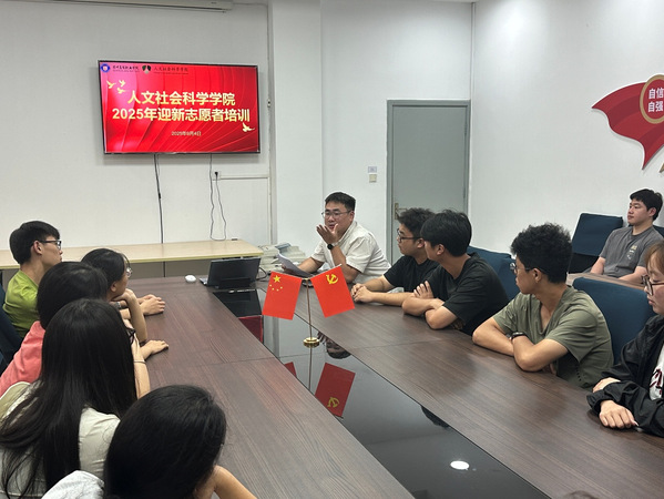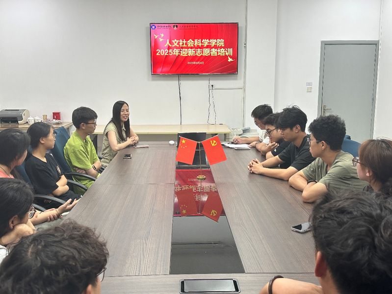 为确保2025级新生迎接工作平稳、有序、高效推进,全面提升志愿者的服务意识与实操能力,帮助新生快速适应校园环境,近日,人文社会科学学院在学院会议室召开2025级新生迎接工作志愿者培训会。学院党总支副书记赵雪飞、分团委书记吴敬德出席会议,全体迎新志愿者准时参会,以认真专注的态度投入培训。