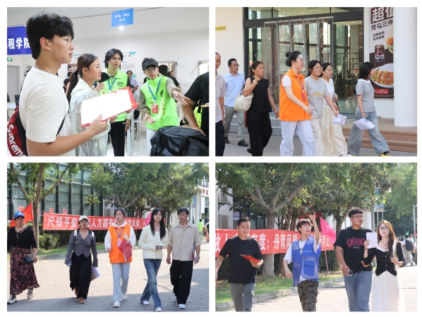 校园内,“新的学期 新的起点 我们扬帆起航”等迎新横幅醒目亮眼,各学院的迎新展位排步整齐,精心设计的迎新展板诉说着校园故事……处处皆是迎接新生的温馨场景。从信息登记、资料领取到宿舍引导,每一个环节都井然有序,背后是工作人员与志愿者们忙碌的身影——他们主动接过新生的行囊,耐心讲解报到流程,细致解答关于学习生活的疑问,用真诚的笑容与贴心的服务,传递着高博温度。