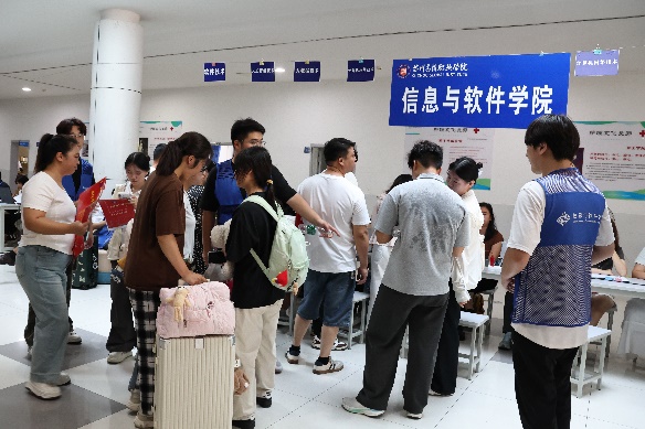 2025年9月6日,是学校2025级新生正式报到的日子。信息与软件学院严格按照迎新工作方案,提前谋划、周密部署,综合协调组、宣传报道组、接站组、报到组、宿舍安排组、后勤保障组、值班组7个工作小组全体成员于当日早晨7:00全部到岗,以饱满的热情、专业的服务迎接来自全国各地的新生,确保迎新工作高效、有序、温暖推进。