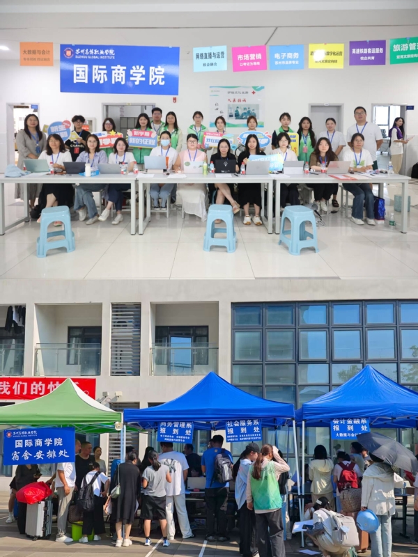 报到当日,学院的迎新工作人员已在报到处各就各位。随着新生们陆续抵达,大家迅速进入状态,校园内外接站组在苏州站和学校门口设立接站点,师生志愿者们以最热情的笑容迎接新生,提供“从站台到校园”的无缝对接服务;在注册大厅,注册报到组的师生志愿者们正在为新生办理入学手续,耐心核对信息,分发入学材料,高效流畅的服务确保了迎新“主战场”的秩序井然;在宿舍区域,住宿报到组穿梭于各栋公寓楼之间,热情引导新生入住,快速分发钥匙,悉心解答住宿疑问,让新生推开门便能感受到“家”的温暖;宣传报到组用镜头和文字实时记录迎新瞬间,传递第一手资讯的“宣传窗口”;后勤保障组则默默守护在幕后,统筹物资调度、维护校园环境、保障电力网络,是确保整个迎新工作顺畅运行的“坚实后盾”。各小组衔接得紧凑又有序,处处都体现着学院大家庭的温馨友爱。