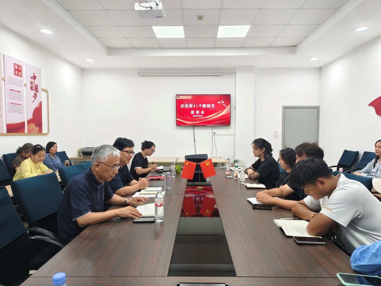 为庆祝第41个教师节,着力营造崇教尚学的浓厚风气,激励全体教职员工进一步胸怀天下,以文化人,弘扬教育家精神,为学院和学校发展再立新功,人文社会科学学院于9月9日上午在学院会议室召开“庆祝第41个教师节教师代表座谈会”。院长黄兴、院党总支书记吴建明、副院长马亚丽以及来自各系部、各专业的15位教师代表齐聚一堂,共话师者初心,共绘发展蓝图。会议由院党总支书记吴建明主持。