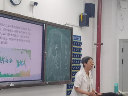 本次会议以“认识康复,热爱专业,规划未来”为主题。会议开始先从有趣的喝水、抛接球游戏,将康复治疗的重要意义导入,引发新生对专业学习的好奇心。康复系主任尹宪明教授发表了热情洋溢的致辞,并从“健康中国”国家战略的高度出发,阐述了康复医学在应对社会老龄化、提升全民健康水平中的重要作用和广阔前景。再从“什么是康复”这一基本概念切入,系统介绍了康复治疗技术的专业内涵、课程体系、人才培养目标以及未来的就业方向。讲解深入浅出,不仅涵盖了物理治疗、作业治疗等核心领域,还展示了理论与实训教学的场景等,极大地激发了新生们对专业课程学习的兴趣和期待。她勉励学子们要永葆初心,用高博校训鞭策自己,在未来三年中沉下心来,刻苦钻研,既要掌握扎实的理论基础,又要练就娴熟的操作技能,成为未来优秀的康复治疗技术人才。最后,学业导师与班级新生见面,鼓励他们努力学习,主动思考,勇于提问,勤于动手,努力成为一名知识渊博、技术精湛的专业人才。
