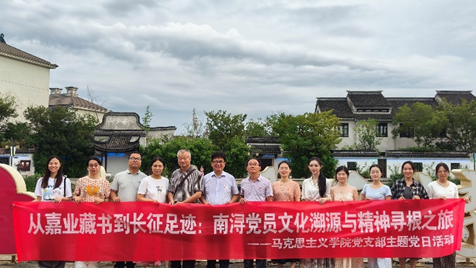 为深入推进党史学习教育常态化、长效化,进一步加强党员教师的思想政治教育和理想信念教育,传承红色基因,牢记初心使命。9月12日,beat365官网马克思主义学院党支部组织了一场“从嘉业藏书到长征足迹:南浔党员文化溯源与精神寻根之旅”的主题党日活动。全体党员教师满怀敬仰之情,共赴湖州南浔,踏上一场追寻红色记忆、感悟革命精神、传承红色基因、凝聚奋进力量的研学之旅。
