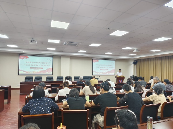 2025年9月17日下午,人文社会科学学院组织全体教职工开展政治理论学习会,围绕“促进海内外中华儿女团结奋斗”——《习近平谈治国理政》第五卷专题进行深入学习。本次学习会由院党总支书记吴建明主讲。