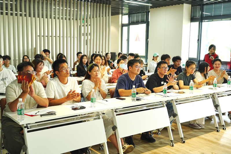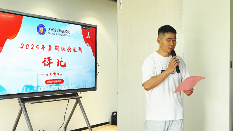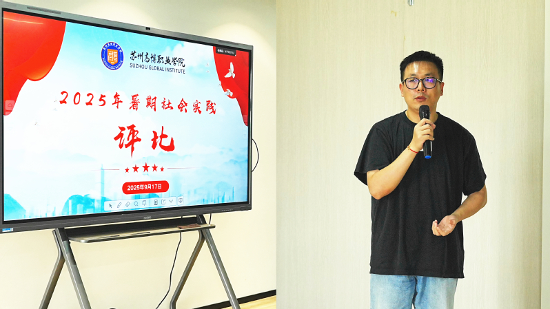本次评比共有7支团队参加,评比环节分为团队展示和指导教师分享两个部分。各团队聚焦实践主题,通过PPT汇报、视频展播、学生答辩等形式,生动呈现了青年学子奔赴基层一线的青春足迹。其中,“红脉铸魂”实践团参观红色场馆感悟革命精神,学习苏绣技艺探索文化融合,走进社区暑托班开展红色教育,实现自我成长与服务社会双向赋能。“红星闪闪”实践团走进阳山敬老院,为老人打扫居室、测量血压血糖,组织香囊制作、漆扇绘制和传统游戏,传递温暖关怀。“城韵轨迹”实践团深入苏州地铁胥口车辆段和黄天荡调度中心,了解轨道交通运行机制,在专业实践中增强职业认知。“凝聚星火”实践团走进苏州工艺美院和苏州湾博物馆,研学桃花坞木刻年画,推动非遗文化与信息技术融合创新。“星火相传”实践团探访苏州革命博物馆和南社纪念馆,深入学习红色历史,挖掘革命精神与南社文化的时代价值。“逐梦青春”实践团在太湖湿地公园参与农耕劳动,体验整地、播种、灌溉等农事活动,感悟劳动艰辛与粮食珍贵。“踏歌而行”实践团跨越苏州、南通两地,创编《烛影晗笑》《追春》等舞蹈作品,走进车站、广场开展惠民演出,同时在体育赛事中提供志愿服务,实现艺术服务与专业实践的融合。