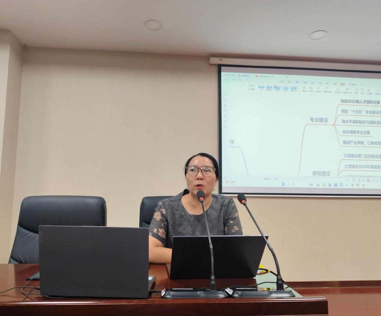 黄兴对本次会议做了总结,向教师们提出四点希望:一是希望教师们强化责任担当,潜心投入教学。要始终以饱满的热情和认真负责的态度投入教学工作。坚持以学生为中心,加强学情分析,做到因材施教;优化教学方法,提高教学吸引力;加强课堂管理,维护教学秩序。二是希望教师们提升个人能力,重视个人发展。要通过相互听课、开展教学研讨以及参加教学竞赛等,不断提高教学能力;通过参加学习培训、学术活动以及申报课题等,不断提升科研能力,实现个人发展。三是希望教师们关心并积极参与专业建设,促进专业发展。要锚定市场需求,找准专业定位,优化课程设置、改进教学方法,创建品牌特色,推动现有专业健康可持续发展。四是希望教师们筑牢安全防线,守好安全底线。要对各实训室、体育场馆及教师办公室等做好常态化安全检查工作,确保万无一失。黄兴最后希望学院全体教职员工明确目标,统一思想,团结一致,振奋精神,为推动学院各项工作顺利开展及学院事业高质量发展而共同努力。