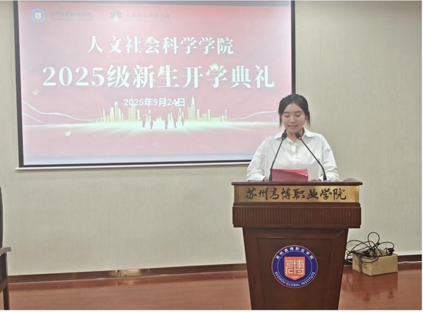 学院教师代表胡微结合各专业特点,寄语新生们练就真本领,成为各自领域的闪光点。并勉励全体新生,依托苏州人文底蕴,在学院多元平台上勇于突破、创造可能,主动开启精彩大学篇章,成为自己人生的执笔人。
