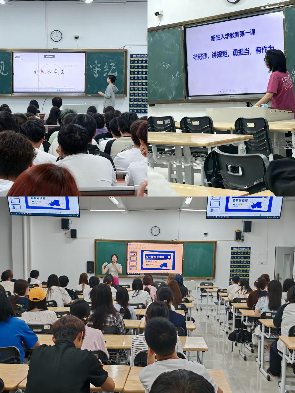 班会尾声,辅导员们寄语新生:“开学第一课的纪律教育,是大学成长的起点。希望大家将纪律意识融入日常,从按时上课、尊重集体、遵守校园规范等小事做起,让规矩成为习惯,为未来的学习生活筑牢根基。”