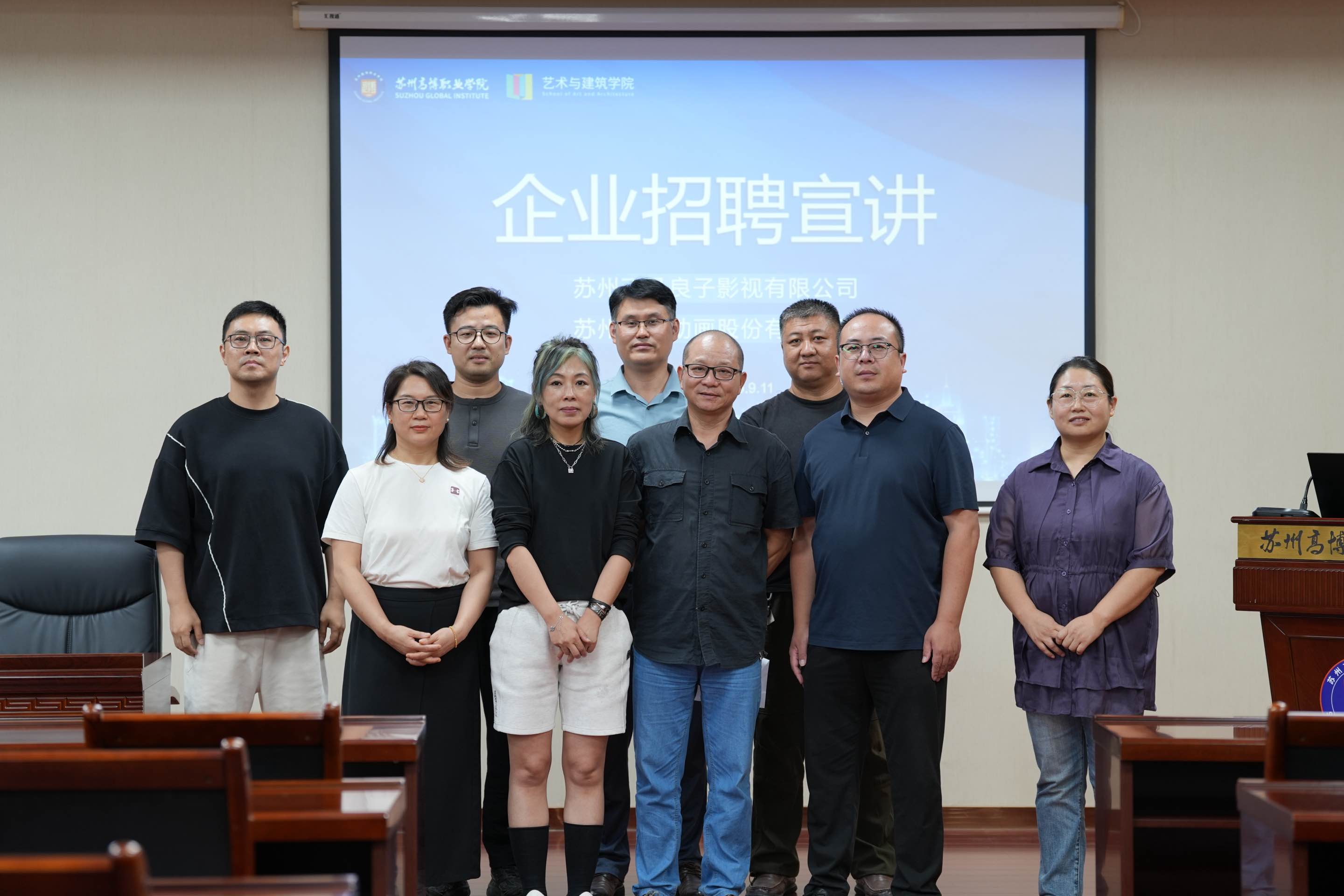 活动特邀了苏州366集团、苏州飞马良子影视有限公司、苏州舞之动画股份有限公司、北京观樘海文化传媒有限公司、苏州伊恩动漫有限公司、苏州和甜设计装饰工程有限公司、苏州大海影视文化传媒有限公司等多家与学院专业设置契合的知名企业走进艺术学院,面向影视动画、视觉传达设计、环境设计、数字媒体艺术、建筑室内设计等6大专业的542名大三学生,分七个专场进行了深入细致的招聘宣讲。系列活动共计为2026届毕业生提供了涵盖特效师、AI绘图工程师、短剧编辑、设计师助理、视频剪辑师、动画分镜师等近两百个优质实习与就业岗位,实现了企业与潜在职业人的提前对接。