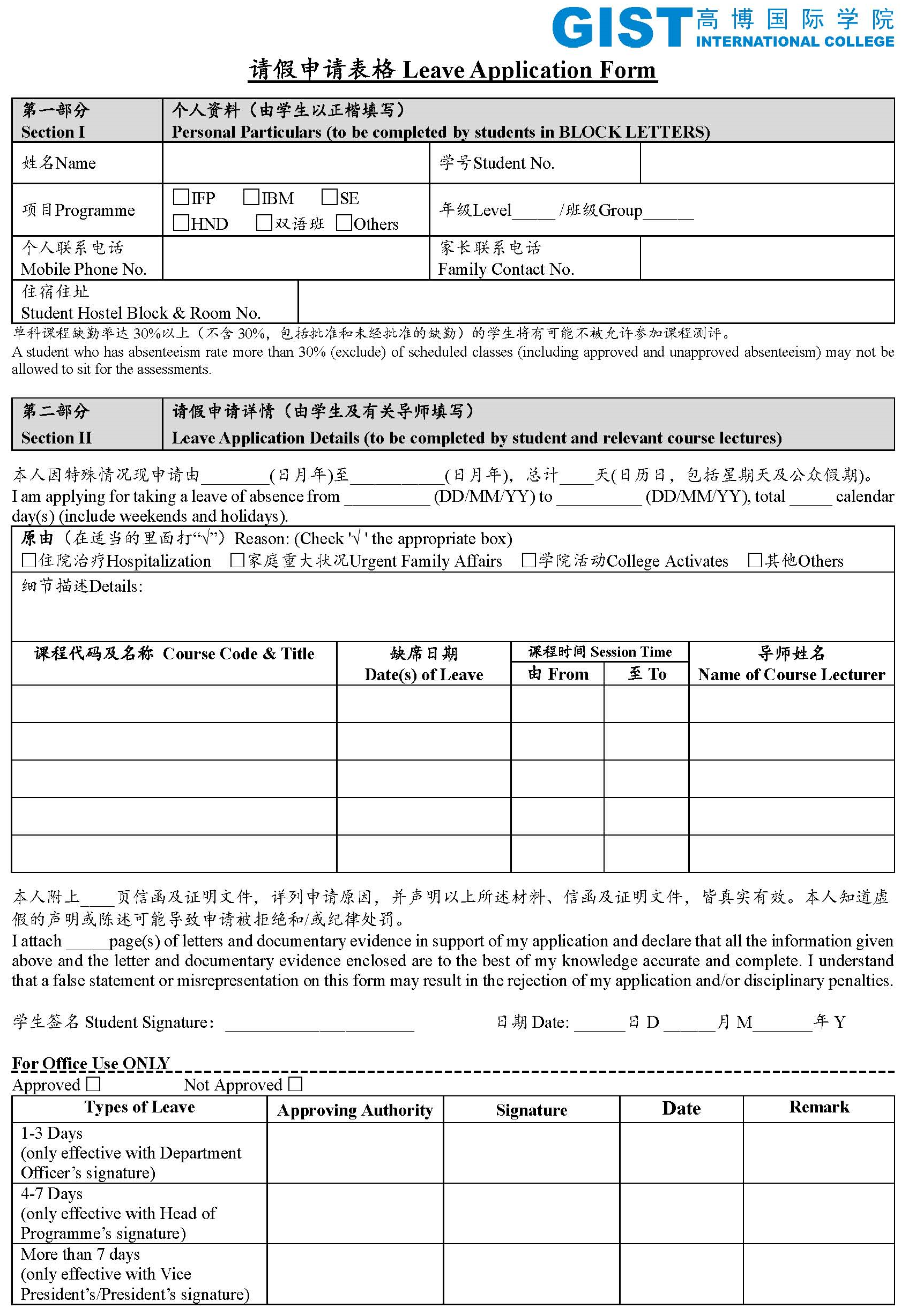 GIST International College has clearly briefed me on the safety concerns of moving to an accommodation outside its jurisdiction. I am fully aware of these concerns but have decided, on my own accord without pressure from any party, to move to an accommodation of my own choice.