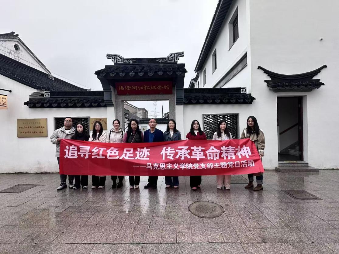为深入推进党史学习教育常态化长效化,将红色基因传承与实践教学深度融合,切实筑牢党员理想信念根基,11月8日,马克思主义学院党支部组织全体党员赴苏州市相城区消泾老街,开展“追寻红色足迹,传承革命精神”主题党日活动,在实地探访中感悟革命初心,在历史与现实的交汇中汲取奋进力量。
