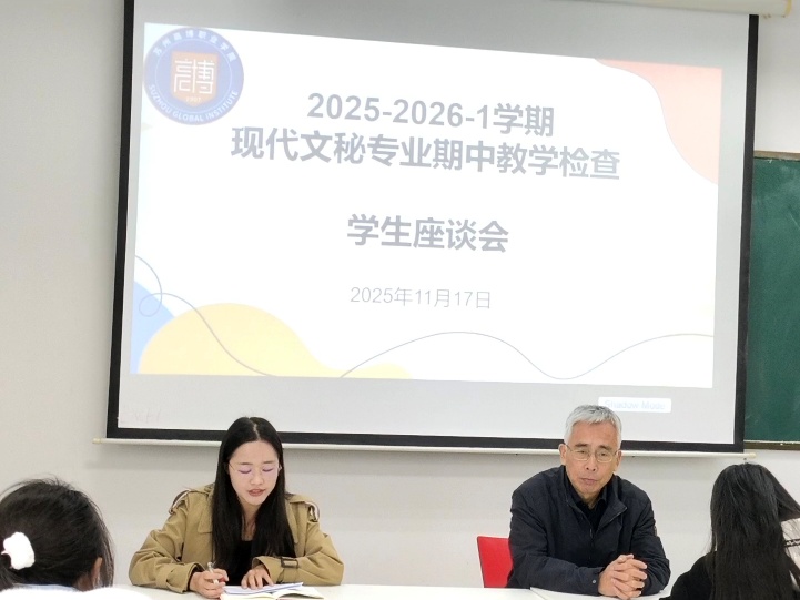此次期中教学检查座谈会的顺利召开,不仅让学校和学院及时掌握了教学运行与学生学习的实际情况,也为后续教学优化、管理提升与服务改进提供了重要参考。相信在学校的悉心指导、学院的扎实推进与师生的共同努力下,2025级现代文秘专业学生将明确发展方向,在专业学习与个人成长的道路上稳步前行。(供稿:人文社会科学学院 李慧敏)