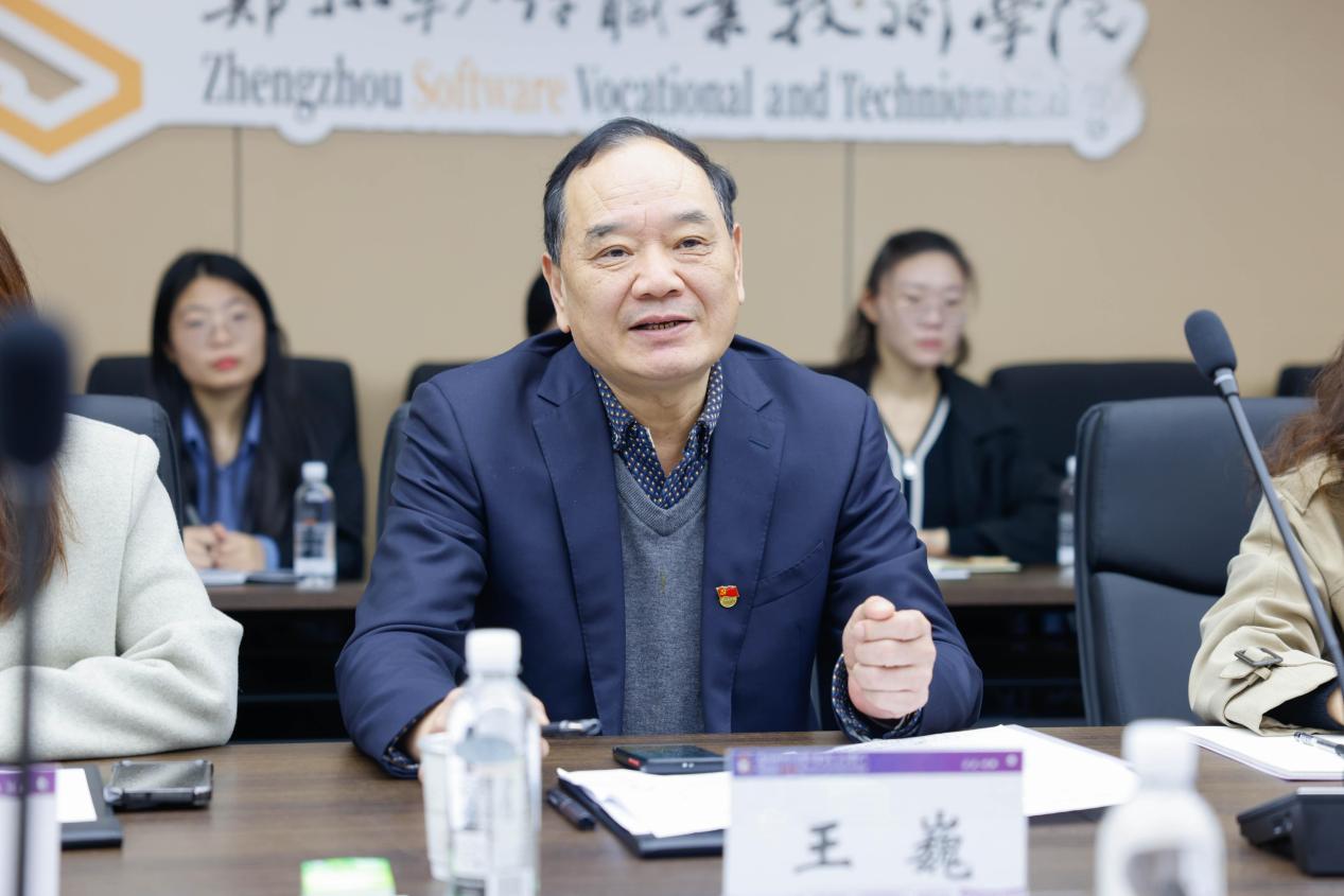 座谈会上,郑州软件职业技术学院人工智能学院院长王巍首先致欢迎辞,对我院调研团队的远道而来表示诚挚问候,并围绕学院办学现状、专业布局规划、招生工作推进、师资队伍建设等方面进行了系统介绍。重点分享了创新推行的 “工坊式模块化” 教学模式与精准对接企业需求的“订单班”人才培养方案,详细阐述了相关举措在提升学生实践能力、强化职业素养培养方面的显著成效与宝贵经验,为我院相关工作开展提供了重要参考。