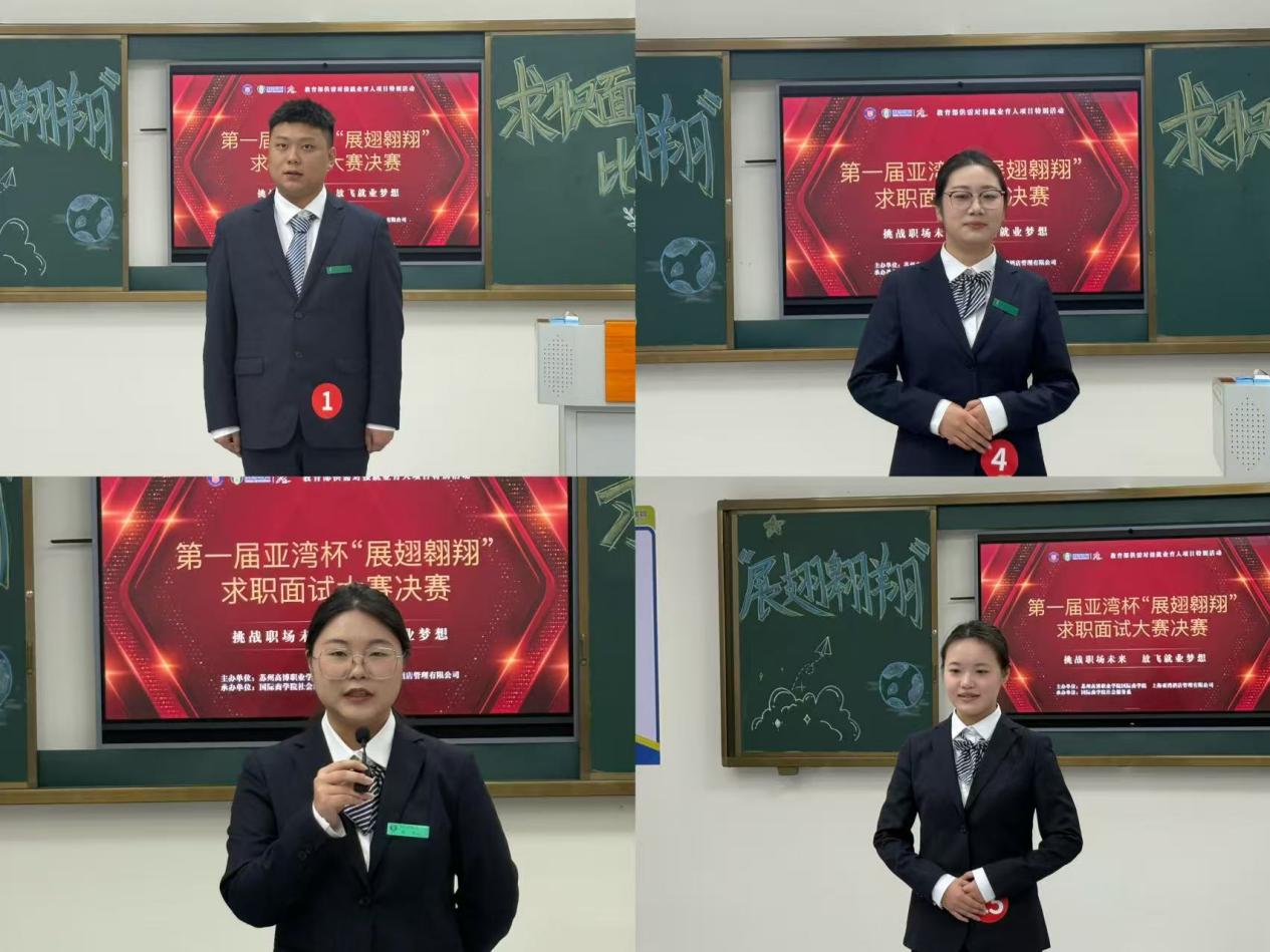紧扣职业教育高质量发展要求,落实“以就业为导向”的育人理念。2025年11月28日,beat365体育亚洲官方网站国际商学院与上海亚湾酒店管理有限公司联合打造的首届亚湾杯“展翅翱翔”大学生求职面试大赛圆满落幕。大赛聚焦亚湾酒旅定向班 24 级学子,以实战化竞赛为载体,锤炼学生职业技能,搭建校企人才对接 “快车道”,为学生职场起步注入强劲动力。