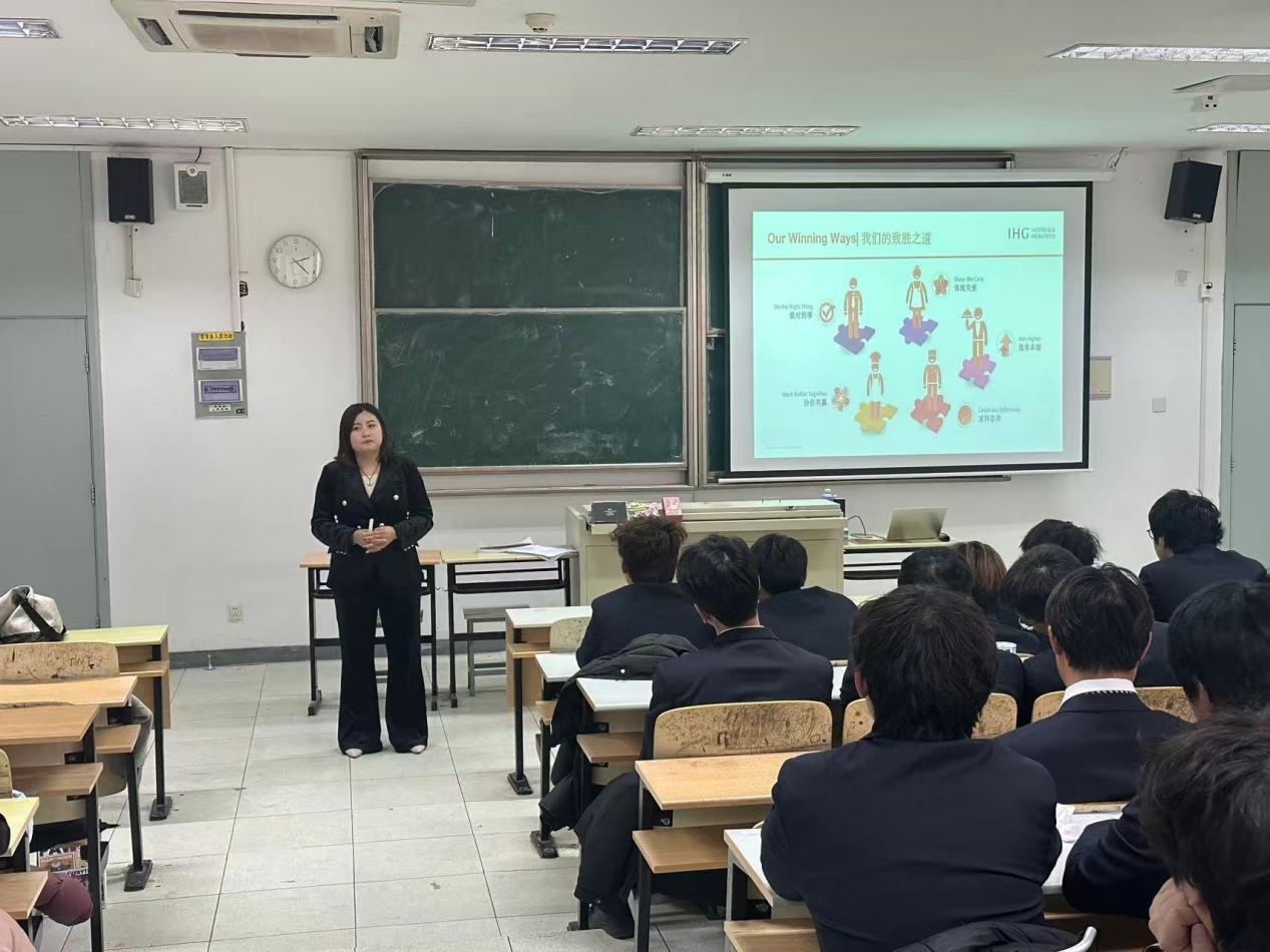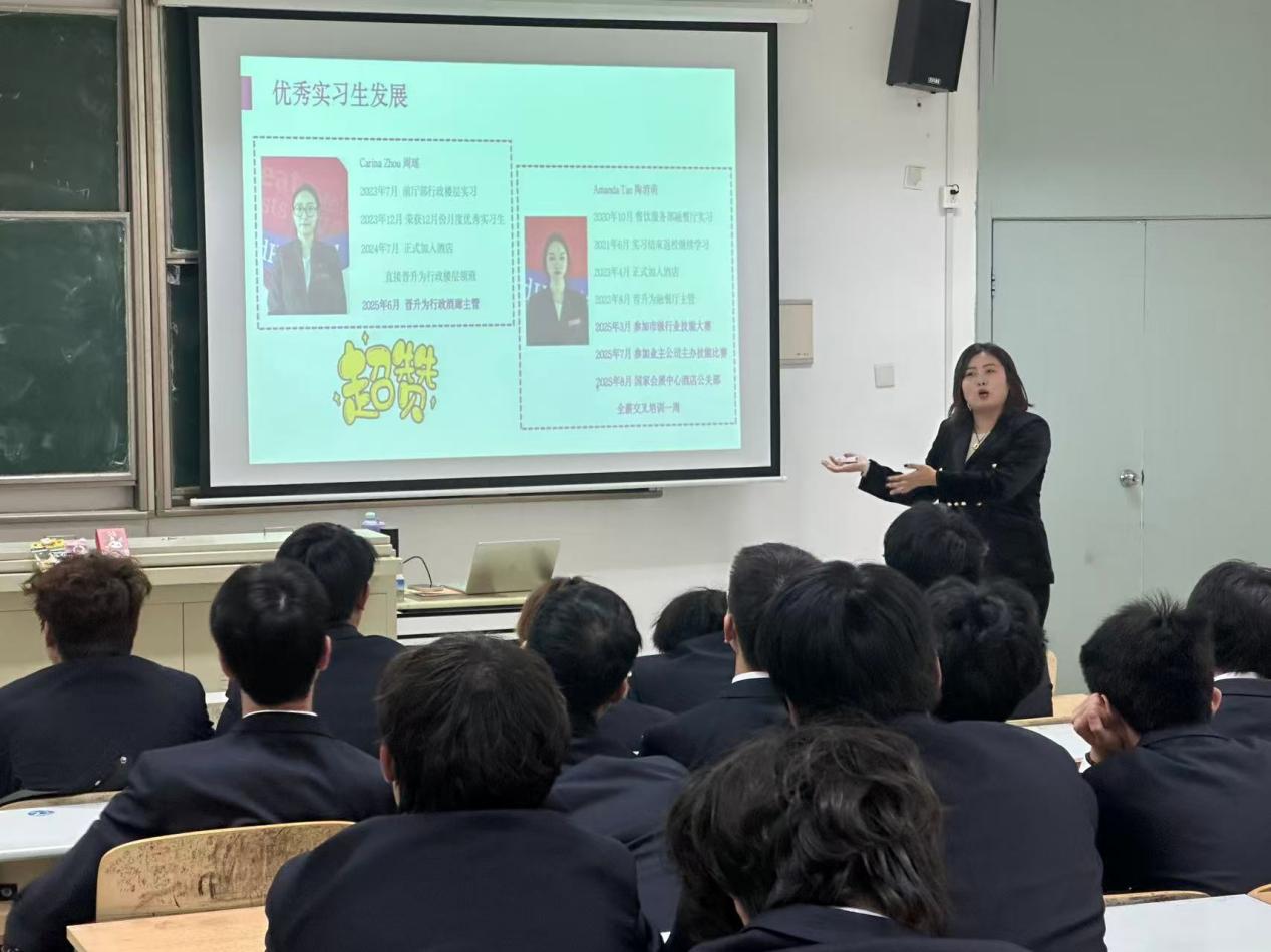2025年11月28日下午,洲际酒店集团旗下上海复旦皇冠假日酒店培训经理罗玉双女士应邀莅临beat365官网,为25级酒旅专业新生开展专题讲座。讲座以洲际集团全球行业影响力为切入点,深度解读品牌核心竞争力,分享人才培养体系与职业发展路径,为学子搭建起校园与行业的高效沟通桥梁。