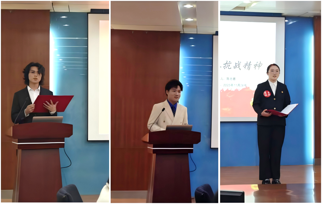 决赛中,每位选手沉浸于一封封带着温度、浸透泪痕,甚至沾染着硝烟与血迹的抗战家书中,为现场增加了庄重而感人的基调。16位选手从家书原文的筛选、背景音乐的搭配,到服装道具的设计,均融入对历史的敬畏和对先烈的缅怀。他们结合家书撰写背景和个人感悟,从不同角度阐释了家书体现出的爱国情怀、民族气节、抗战精神等。选手们有的选取赵一曼、左权、夏明翰等抗战英烈的家书,有的聚焦普通战士的抗战故事,他们或慷慨激昂,或深情款款,通过一封封抗战家书,讲述革命先烈的英雄事迹,用真挚的情感与饱满的状态,开启了一场跨越时空的“红色对话”。每位同学的演讲都饱含着对先烈的缅怀,对精神的传承,深深打动了在场的评委和观众。