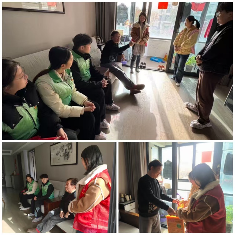 为深化校社共建,弘扬志愿服务精神,传承红色基因,2025年11月27日下午,国际商学院学生党支部与青山绿庭社区共同启动了“暖心陪伴,青春辉映夕阳红”志愿服务活动。党支部书记马俊涛老师带领四名入党积极分子,在社区工作人员陪同下,前往社区老党员俞大爷家中进行探望慰问与交流学习。
