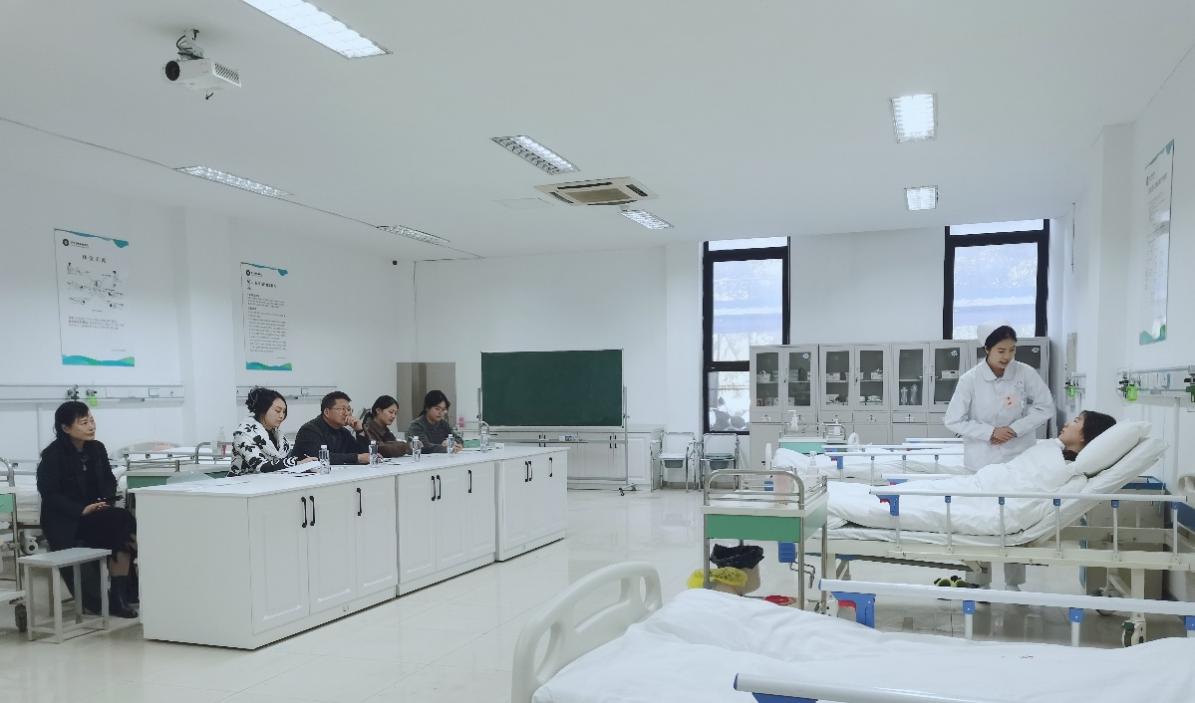 经过近一个半小时的紧张比拼,12位选手全部完成了决赛项目的考核。在所有选手比赛结束后,大赛组委会组织了集中的点评环节。各位评委老师从不同维度对选手们的整体表现进行了全面而深入的剖析与总结。於学良副院长从赛事组织、技能标准对接及选手综合素养提升等方面进行了宏观指导;王亚兰、陈顺娟、徐盼盼等评委老师则分别从操作流程的规范性、照护过程中的人文关怀体现、与“老人”沟通的有效性、突发事件处理的合理性以及细节把握等多个具体方面,对选手们的表现进行了细致点评,既肯定了选手们在比赛中展现出的亮点与进步,也中肯地指出了存在的不足和改进方向,使在场选手和观摩学生受益匪浅。