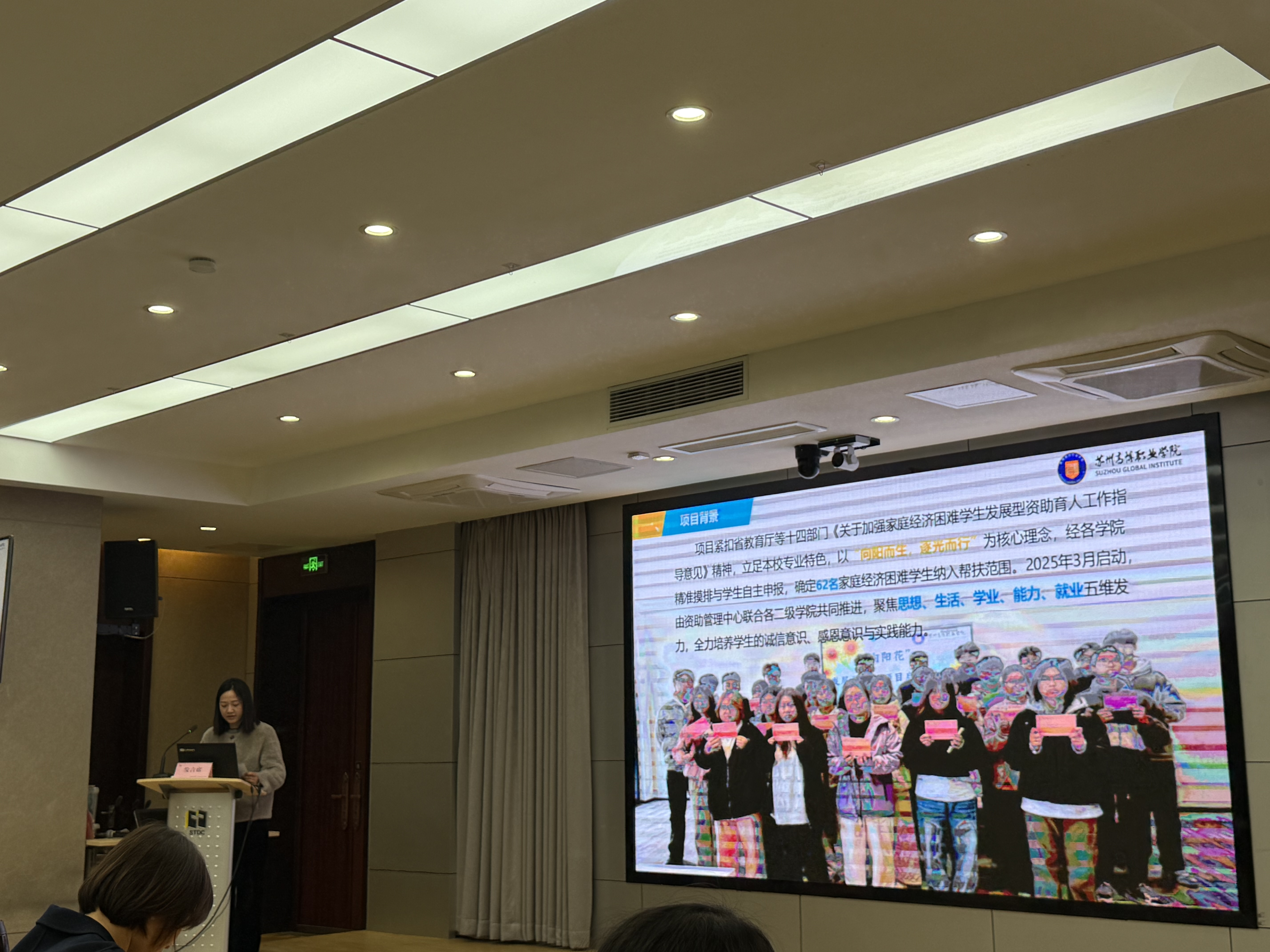 本次评选经各高校申报、现场展示、专家评审和市教育局审核、公示等环节有序推进。12月1日,苏州市教育局联合市学生资助管理中心组织现场评审会,由苏州市教育局特邀省、市资助工作领域专家组成专业评审团,对25所在苏高校的参评项目进行集中考评。活动现场,25所高校依抽签顺序进行现场展示与解说。beat365官网“向阳花”发展型资助育人项目凭借精准的需求定位、鲜明的专业特色及扎实的育人成效,在限时展示与答辩中,清晰呈现了项目聚焦思想、生活、学业、能力、就业五维需求精准发力的核心逻辑,全面阐释了全方位、立体化资助育人体系的构建思路,其创新性与实效性获得评审专家的一致认可,为项目最终获奖奠定了坚实基础。